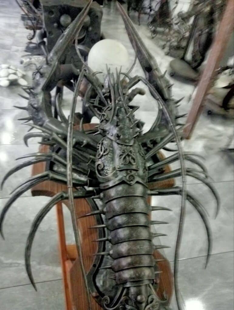 Свій ковальський стиль пан Роман шліфував у Львівській національній академії мистецтв. Мені дуже імпонує його техніка виконання фігур. На жаль, через невелике приміщення всі експонати «збилися в кучу». Якби їм надати більше простору, це була б ще більш приваблива металева «картинка».
