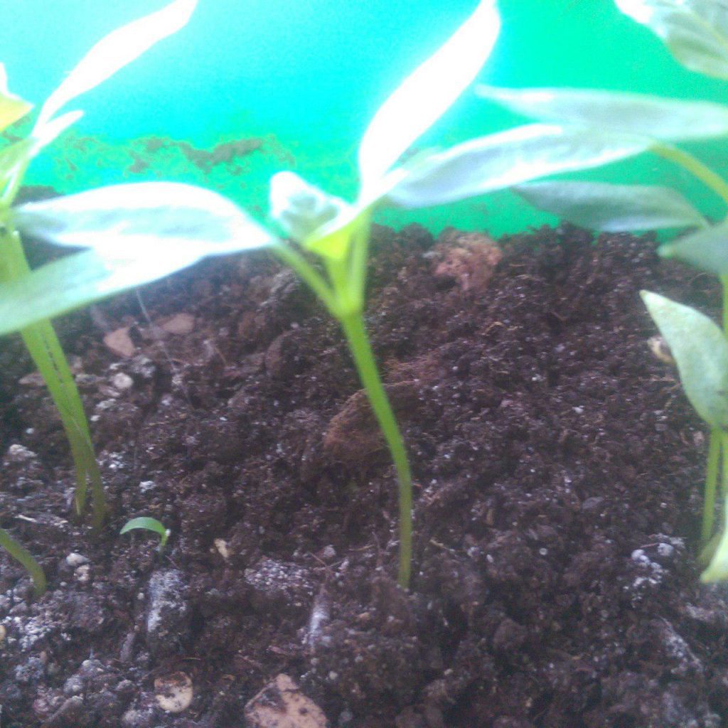 Перець росте досить повільно. Висіяний три тижні назад він зійшов, але досить густо. Тому треба додати простору.