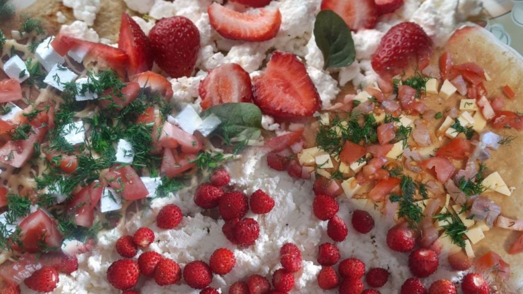 Варіанти начинки обираєте а свій смак! Кожен млинець може бути з різною начинкою! Це зручно, коли ви хочете сир з бананом, а ваш партнер яйце з твердим сиром.