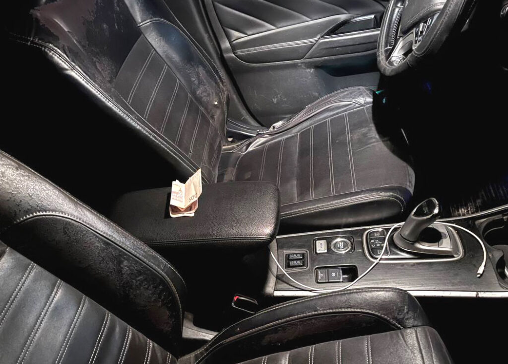 Попри застереження про кримінальну відповідальність за такі дії, порушник поклав на підлокітник тисячу гривень. Усі дії зафіксовані на службову боді-камеру. Злочин задокументували, кошти вилучили.