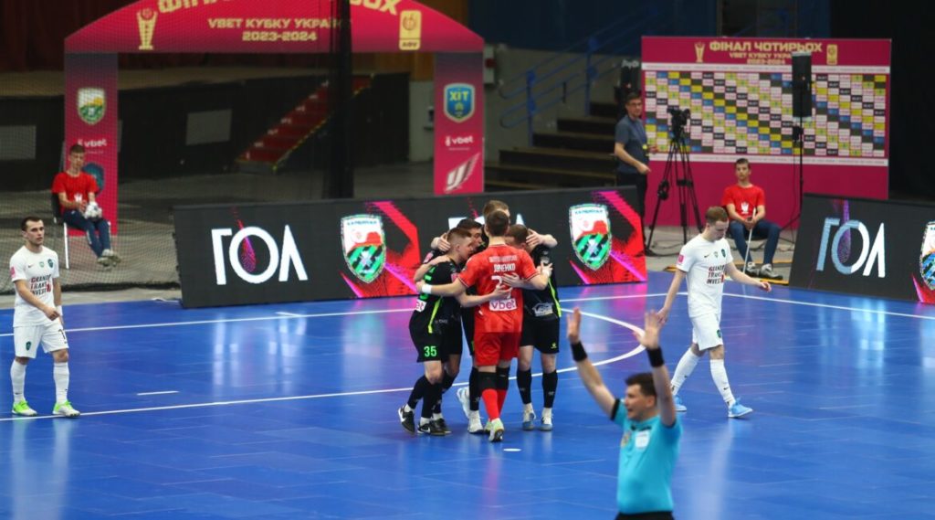 Вже в дебюті гри в столичному Палаці спорту МФК «Кардинал-Рівне» пропустили два швидкі голи. Спочатку кияни вдало розіграли штрафний удар і Максим Літвінов пробив ідеально – 0:1! А менш ніж за хвилину удар Ростислава Семенченка прийшовся у штангу воріт, і Владислав Моспан встиг першим на добиванні – 0:2.
