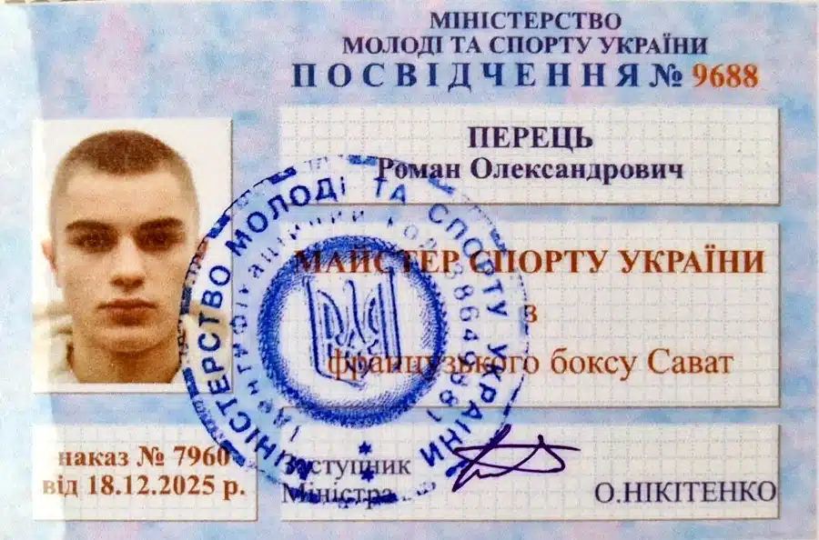 Спортсмен із Млинівської громади Роман Перець отримав звання Майстер спорту України з французького боксу Сават.