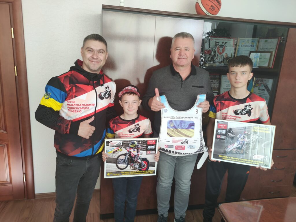Минулого тижня наші юні таланти разом з керівником ГО «Клуб вболівальників рівненського спідвею» Сергієм Головнею, завітали на фабрику і вручили подяки підприємству з особистими автографами за підтримку у змаганнях, а також жилет, в якому наші хлопці виступали у Пардубіце.Така синергія важлива не тільки для рівненського спідвею, а й для самої «нетканки». Завдяки виступам рівненських спідвеїстів, які змагаються з лого фабрики на спортивній амуніції та техніці, вона поступово стає впізнаваною і в Європі.