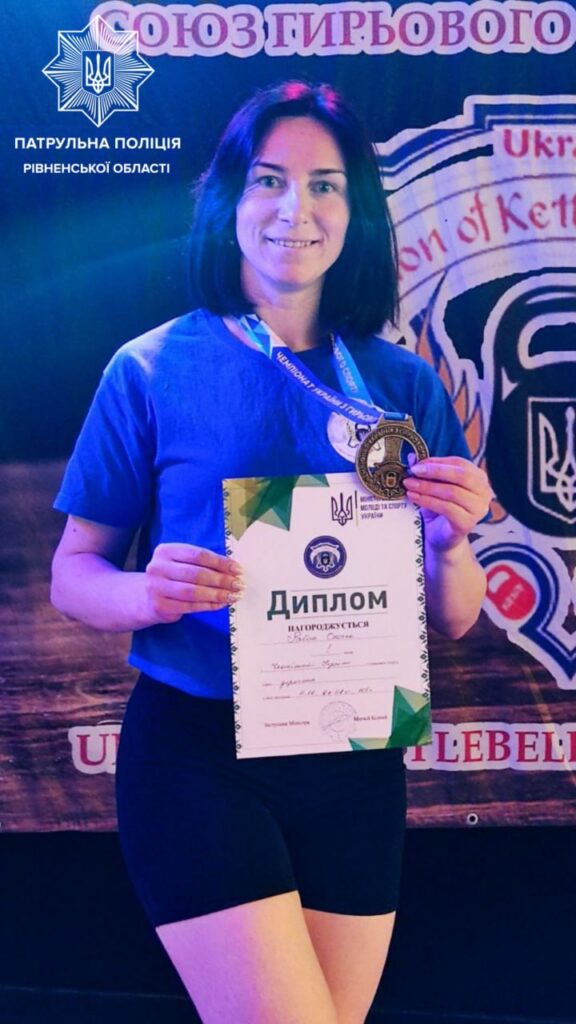 Перемогла на чемпіонаті України з гирьового спорту патрульна Оксана Рабош з Рівненської області.