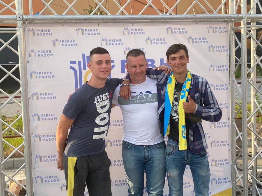 Віктор Шакирзян та команда «Рівне Разом» забезпечили фан-зону дитячими ігровими батутами, аби малеча могла сповна повеселитись під час того, коли дорослі вболіватимуть за рідну збірну. Окрім того, кожному на згадку прихильники «Рівне Разом» дарували біленькі брендовані кульки. Також усі охочі мали змогу сфотографуватись у фан зоні на банері команди «Рівне Разом».