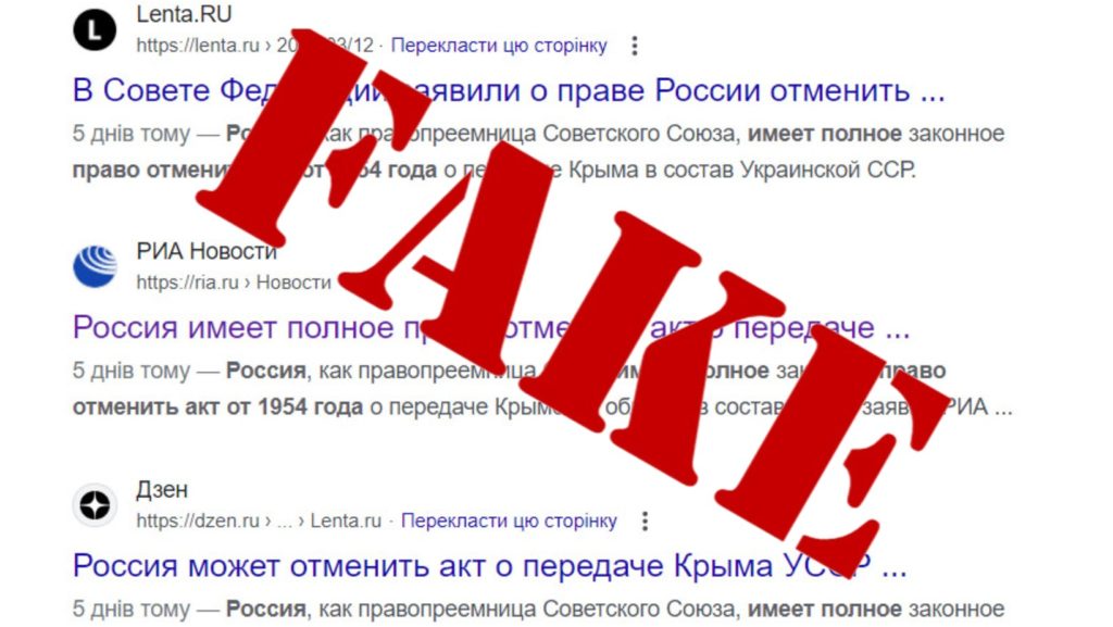 російські ЗМІ поширюють заяву члена міжнародного комітету ради федерацій сергія цекова про те, що росія як правонаступниця СРСР має повне законне право скасувати акт від 1954 року про передачу Криму до складу УРСР.