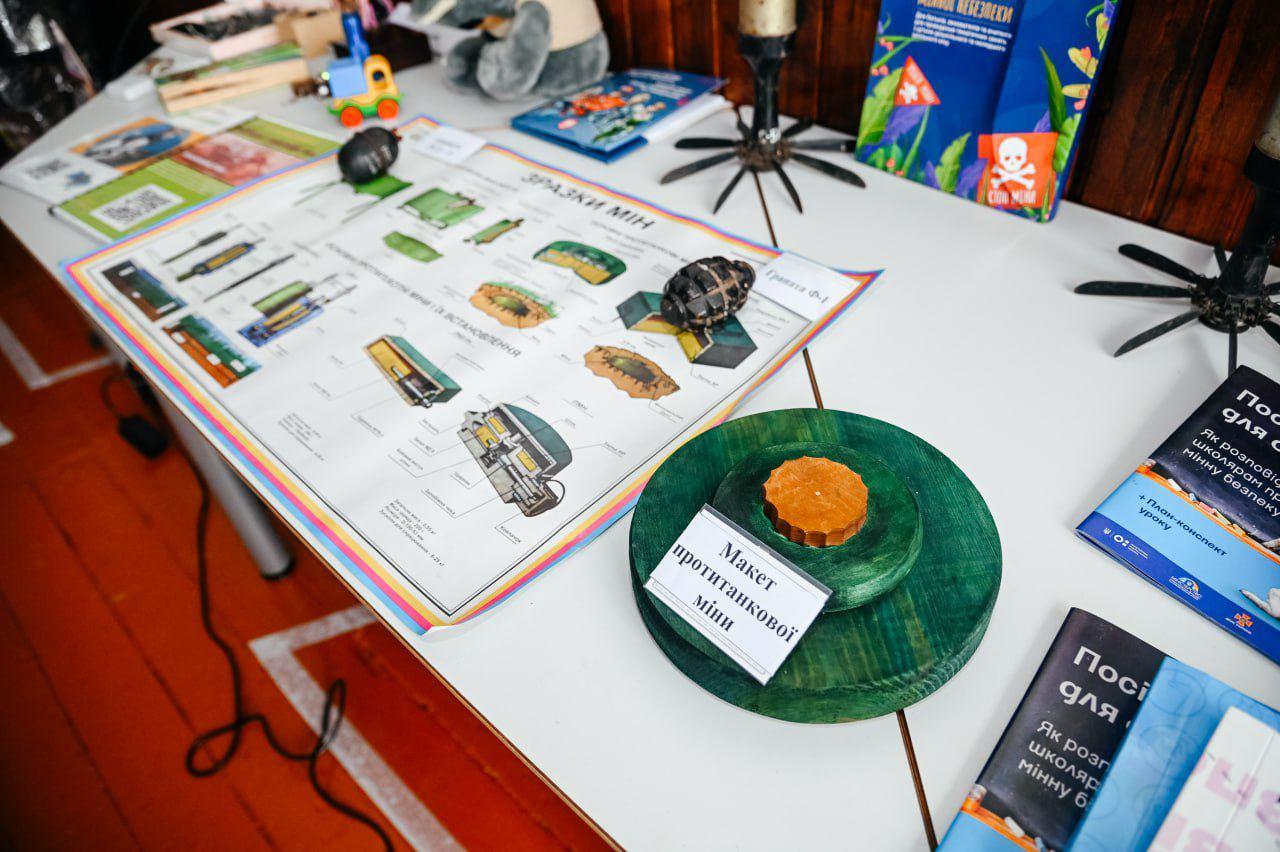 Клас розділений на кілька навчальних зон та обладнаний муляжами вибухонебезпечних предметів, інвентарем для пожежної безпеки, домедичної допомоги.