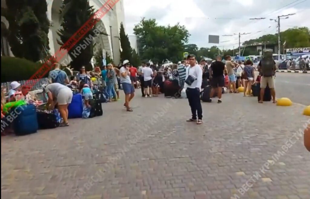 Після сьогоднішніх вибухів у Криму на вокзалі Сімферополя утворилися черги. Росіяни не можуть виїхати, оскільки окупаційна “влада” скоротила маршрут потягів, що прямували з Росії.