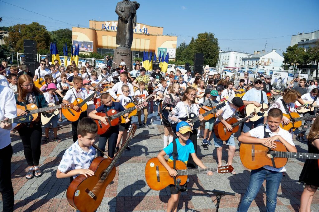 115 гітаристів нині на Майдані Незалежності разом з рівнянами та гостями міста заспівали воістину легендарну пісню «Ой, у лузі червона калина»!