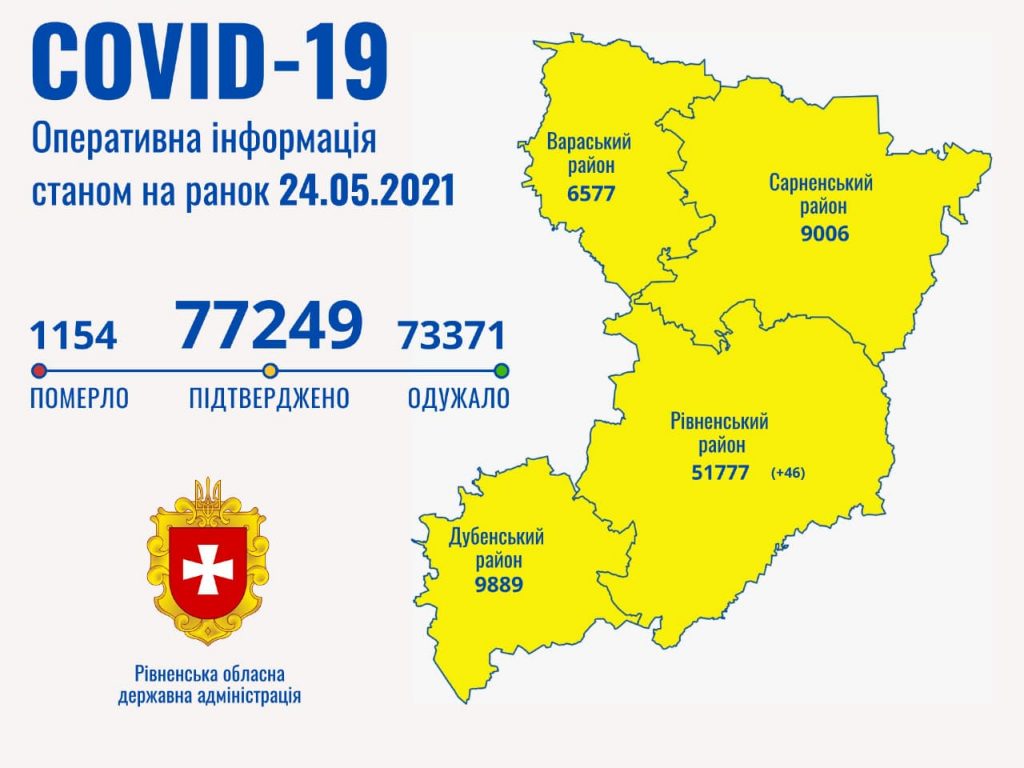 Таким чином в Рівненській області наразі маємо 77 249 випадків захворювання на коронавірусну хворобу.