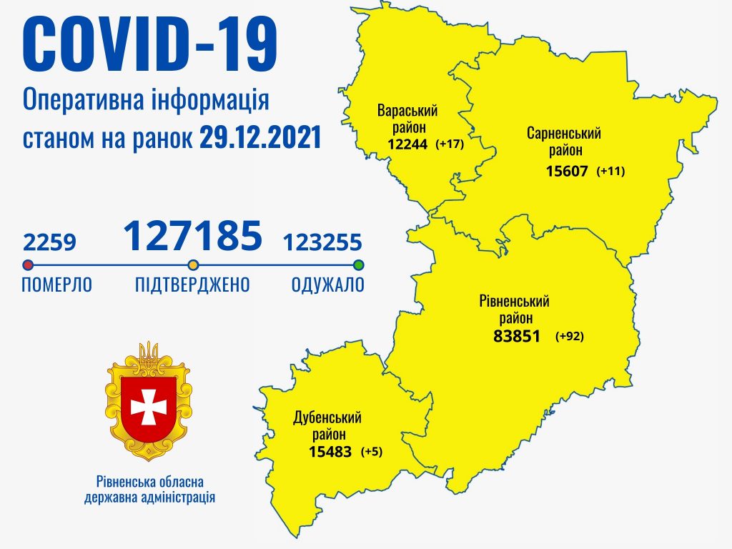 Таким чином в Рівненській області наразі маємо 127185 випадків захворювання на коронавірусну хворобу.
