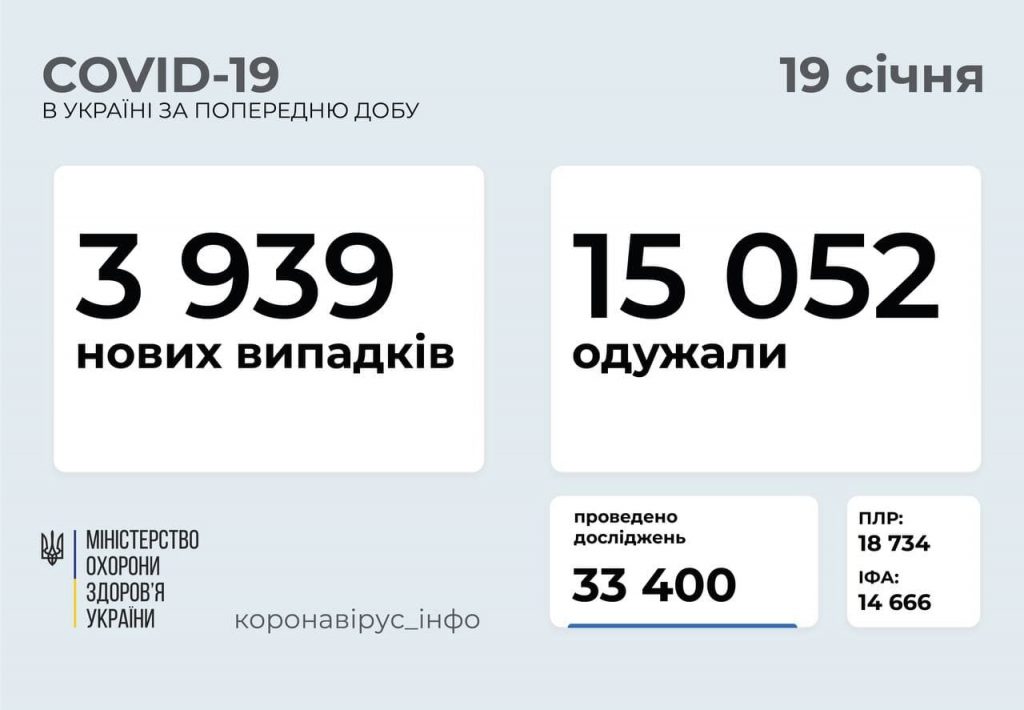 5 990 нових випадків коронавірусної хвороби COVID-19 зафіксовано в Україні станом на 17 січня 2021 року. Зокрема, захворіли 177 дітей та 236 медпрацівників.