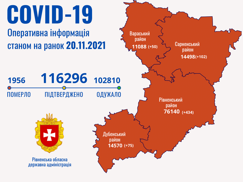 Таким чином в Рівненській області наразі маємо 116296 випадків захворювання на коронавірусну хворобу.