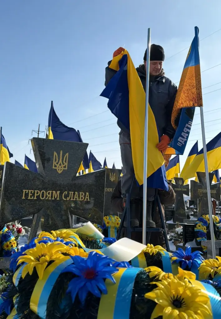 Могили загиблих військових у Рівному доглядають постійно – у будь-яку пору року. Напередодні Дня Героїв Небесної сотні та четвертої річниці початку повномасштабного вторгнення на Алеї Героїв оновили прапори, замінили зношені вінки та привели до ладу територію.