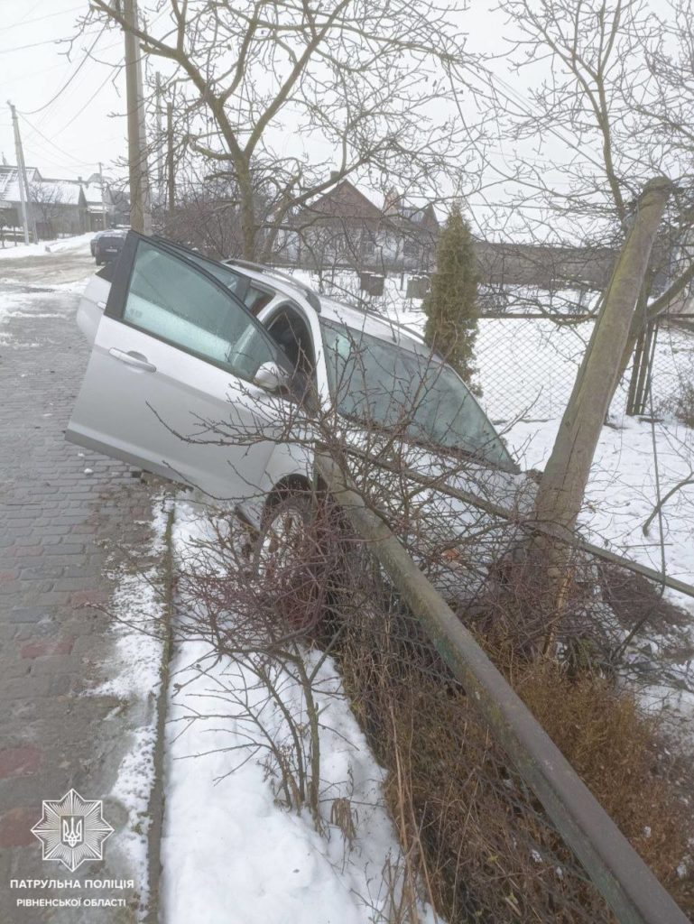 Автомобіль на Рівненщині в’їхав у паркан. Таке повідомлення отримали патрульні поліцейські у місті Сарни.