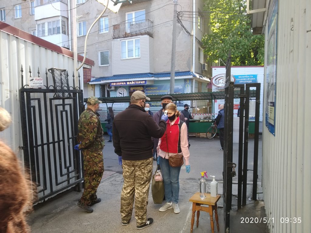Центральний ринок сьогодні, 1 травня, приймав своїх перших покупців. При вході у відвідувачів вимірюють температуру, також чергують мобільні групи правоохоронців та СОМу, які контролюють кількість людей на території та дотримання карантинних заходів: наявність рукавичок, масок і дотримання дистанції.