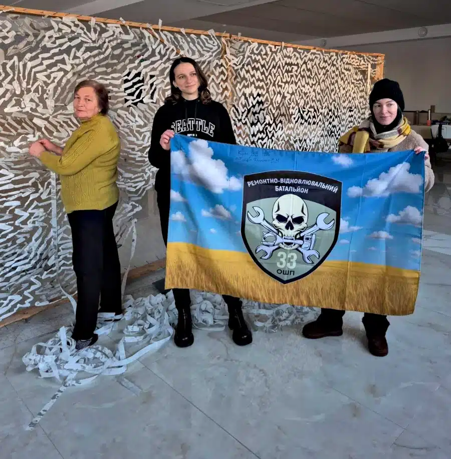 За зібрані кошти протягом місяця вдалося закупити 24 рулони тканини та основу для плетіння сіток, що дозволило не зупиняти роботу й нарощувати темпи.