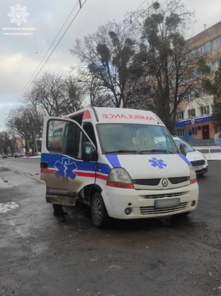 Учора, 13 січня, патрульні у Рівному на вулиці Дубенській зупинили за порушення ПДР автомобіль з проблисковими маячками та наклейками “Ambulance”.
