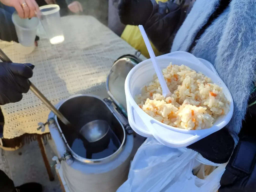 Щодня біля кінотеатру «Україна» у центрі Рівного можна отримати гарячий обід. За майже два місяці цією можливістю скористалися тисячі людей – і попит лише зростає. Соціальна ініціатива триватиме щонайменше до весни.