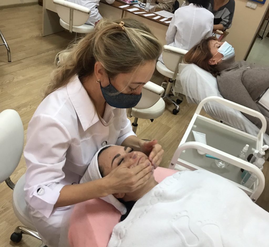 На державній кваліфікаційній атестації, що відбувалася безпосередньо у навчальному кабінеті косметиків, слухачки впевнено продемонстрували кваліфікаційні практичні завдання, виконуючи процедури дорсенвалізації, депіляціі, накладання масок, пресотерапії, масажні техніки обличчя та інші. Усі підтвердили свою професійність та готовність до самостійної роботи.