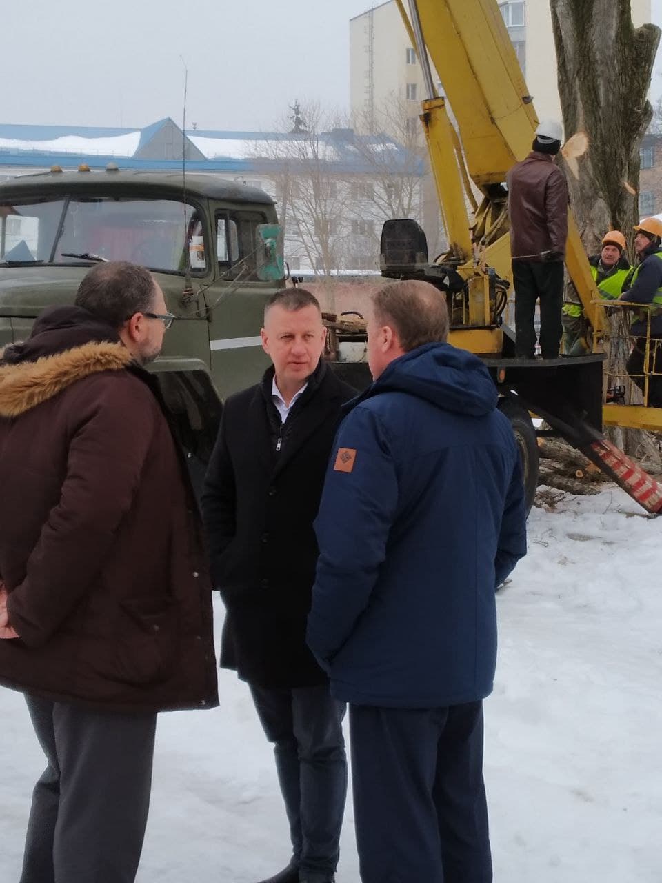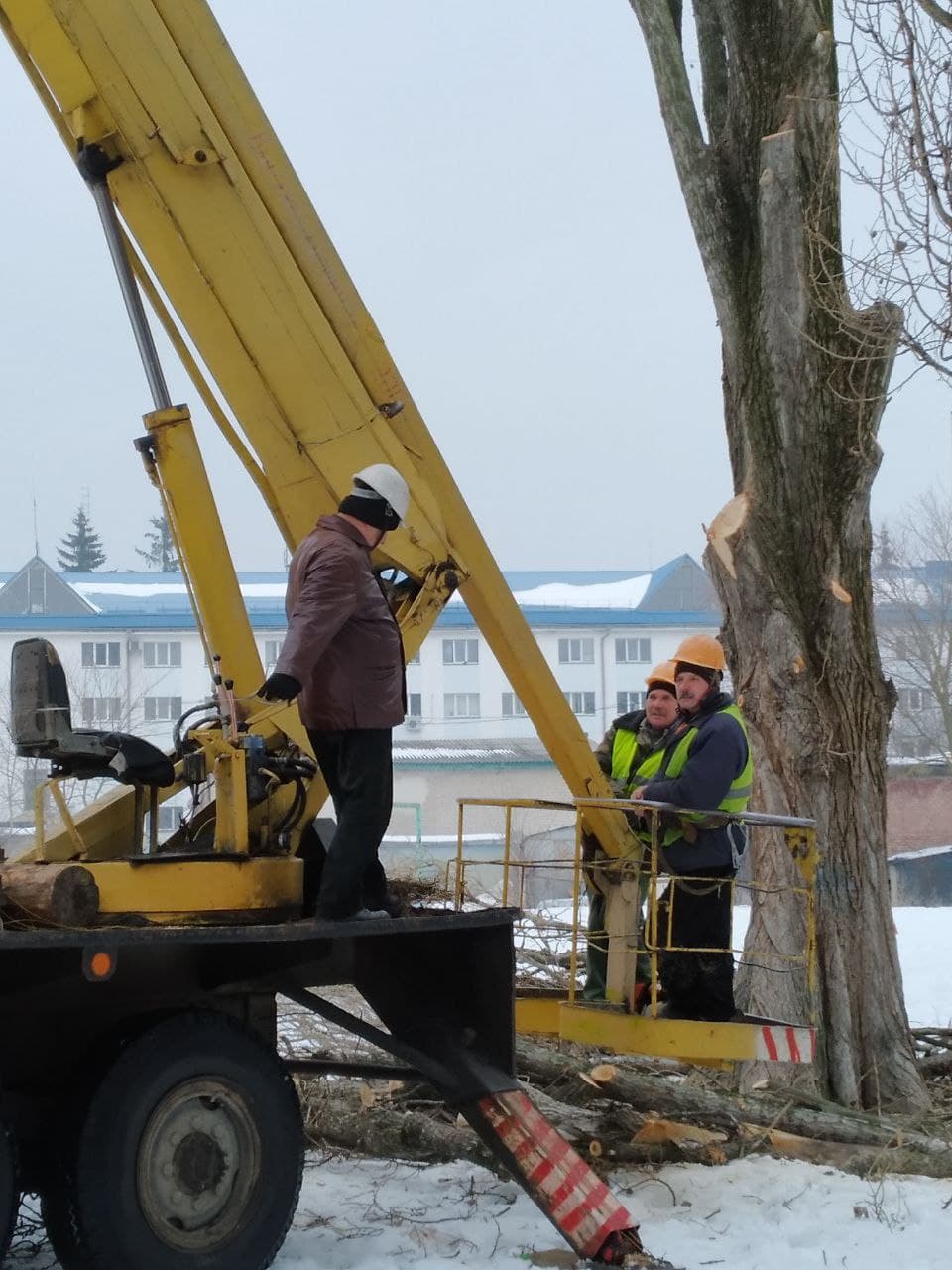 Сьогодні працівники міського тресту зеленого господарства приступили до знесення старих тополь на території ЗОШ №9.