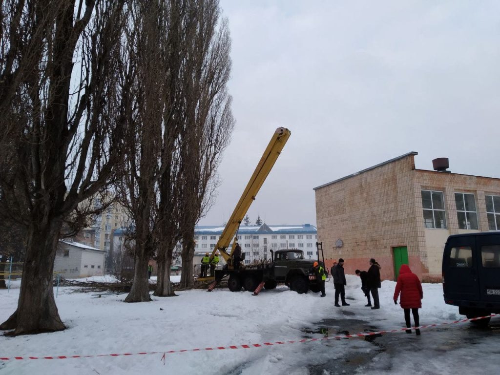 Сьогодні працівники міського тресту зеленого господарства приступили до знесення старих тополь на території ЗОШ №9.