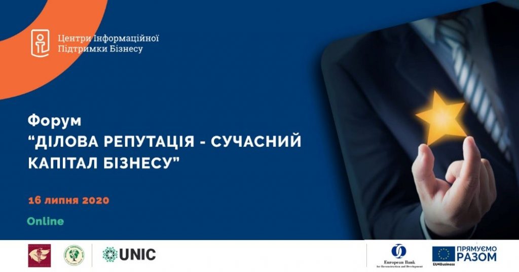 16 липня відбудеться онлайн-форум «Ділова репутація – сучасний капітал бізнесу», спрямований розвинути в учасників навички, необхідні для створення та впровадження стандартів етичного бізнесу в Україні. Подію організовують Центри інформаційної підтримки бізнесу, засновані на базі Клубу Ділових Людей Україна та Київської торгово-промислової палати, за підтримки ЄБРР у рамках ініціативи ЄС.