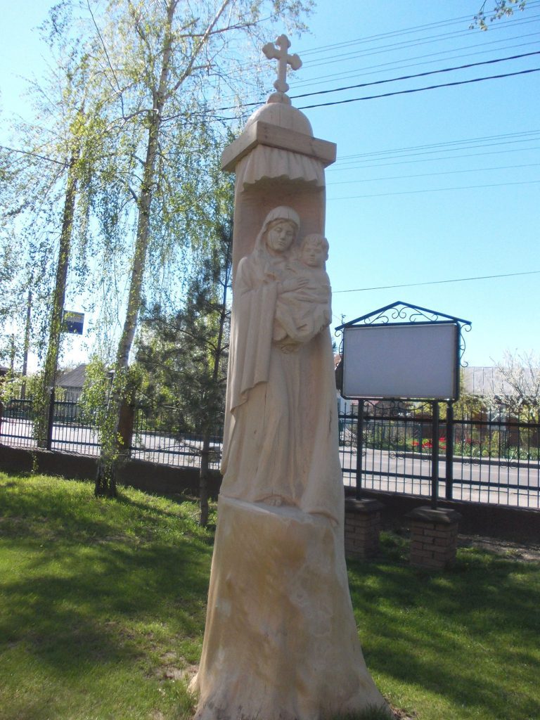 Від Її обличчя не можна відірвати очей. Мимоволі згадуєш Шевченкові рядки: «Нічого кращого немає, як тая мати молодая з малим дитяточком своїм…» Такою побачив Божу Матір дубенський скульптор Микола Бондарчук. Богородиця нагадує типову волинську жінку. Вона круглолиця й миловидна, очі напівприкриті повіками й коли стоїш унизу, то складається враження, ніби вона дивиться саме на тебе й уважно слухає. Натомість Боже Дитя недитячим мудрим поглядом дивиться вдаль, хоч личко його таке ж миловидне як і в матері. Він схожий на наших русоволосих і світлооких українських дітей з трішки кирпатим носиком.