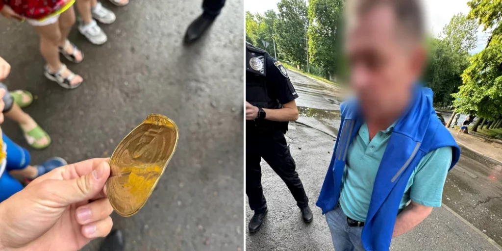 Учора, близько 19-ї вечора, патрульні отримали повідомлення про те, що біля дитсадка на дорозі лежить предмет, схожий на бомбу, а поруч граються діти.