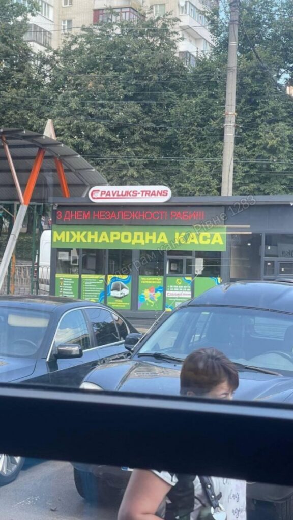 24 серпня, близько 12 години чоловік, шляхом несанкціонованого втручання до електронного банера міжнародної каси з продажу квитків, змінив на ньому інформацію. Через кілька годин до поліції надійшло аналогічне звернення — надпис на табло було змінено по вулиці Драгоманова.