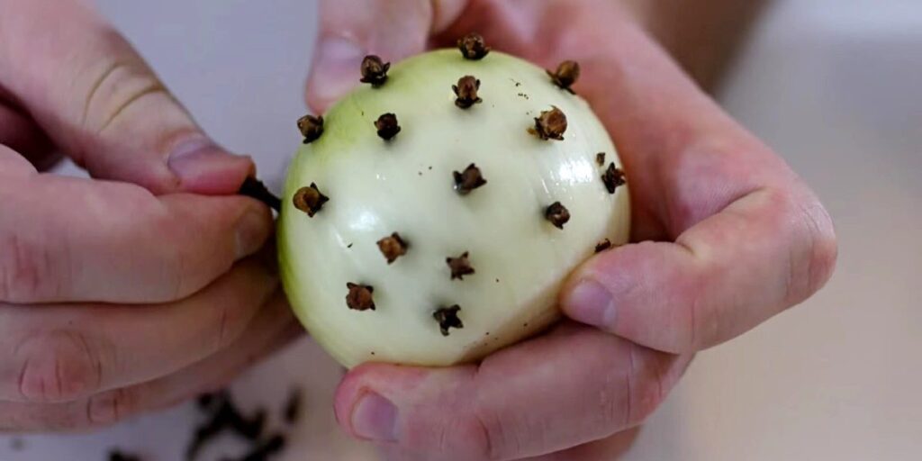 Цей винахід французьких гурманів – цибулина клуте (onignon cloutе. Буквально «оббита цвяхами»). У звичайну цибулину встромляють кілька гвоздикових бутонів (за смаком, але ми рекомендуємо не захоплюватися, бо гвоздика володіє досить потужними ароматичними властивостями, тому 5-6 шт. буде досить).