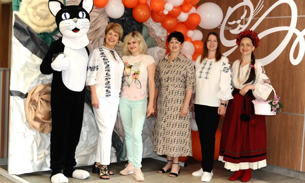 Вже зранку працівників чекав приємний сюрприз – їх зустрічали талісман підприємства кіт Феномен та Україночка, пригощали цукерками і фотографували. Фотозона була особливою – замість звичних банерів організатори підготували яскраве панно з нетканих матеріалів власного виробництва. Те ж саме повторилося для працівників другої зміни.