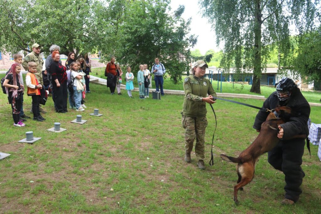 Кінологи показали юним гостям, як відбуваються тренування службових собак?? та розповіли про особливості своєї роботи, показали, в яких умовах утримуються чотирилапі вихованці та як харчуються.
