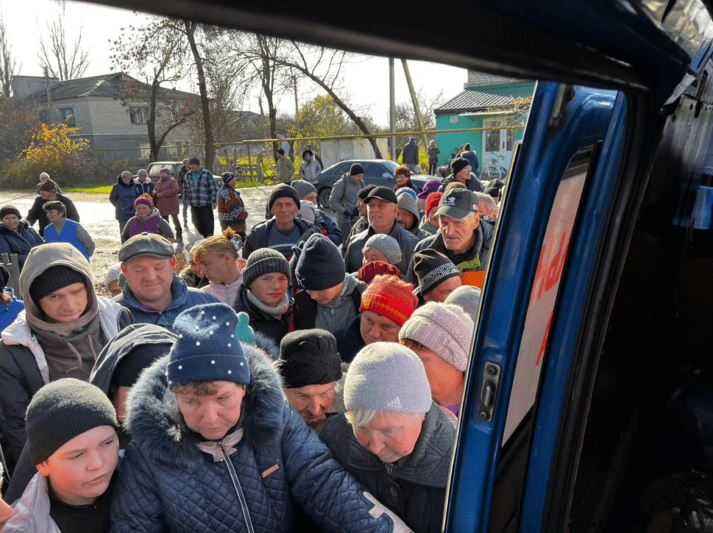 Перші буси із допомогою з Рівненщини розвантажили у селах Чорнобаївка та Киселівка, а також у м.Херсон.