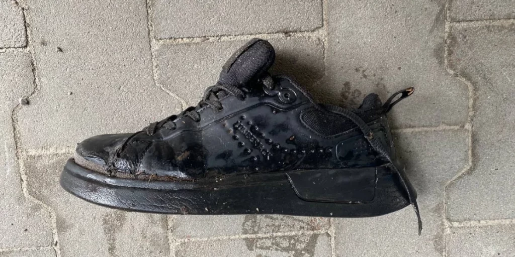 Був одягнений у светр сірого кольору, кофту з візерунком «квадрат», футболку, штани, кросівки 41 розміру, нижню білизну, шкарпетки — все чорного кольору.