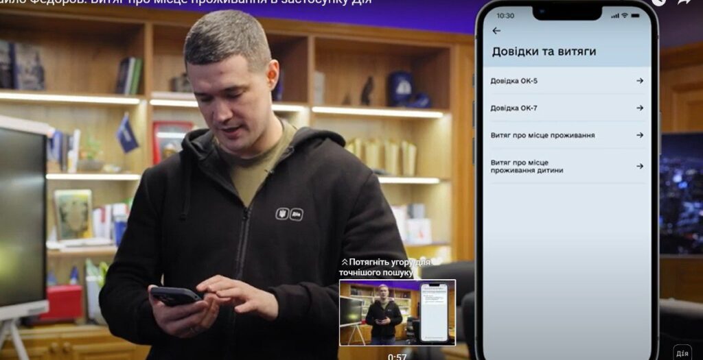 Очільник Мінцифри опублікував відео, як за декілька секунд замовити у “Дії” довідку, що необхідна для кожної четвертої державної послуги.