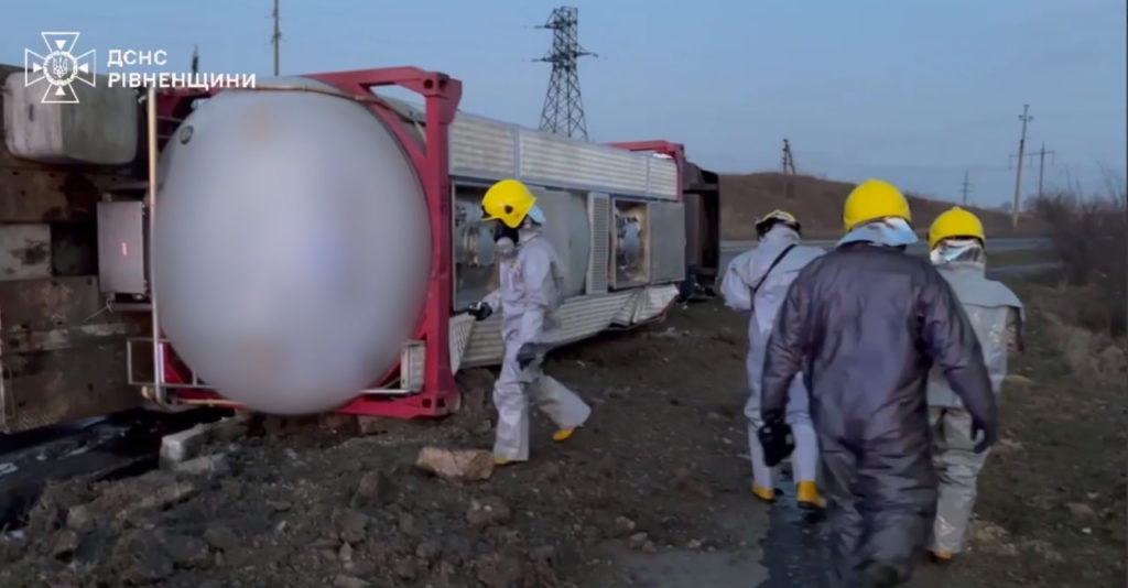 Вчора, 7 лютого, о 16:01 поблизу с. Карпилівка Рівненського району перекинулася автоцистерна з міндобривом.