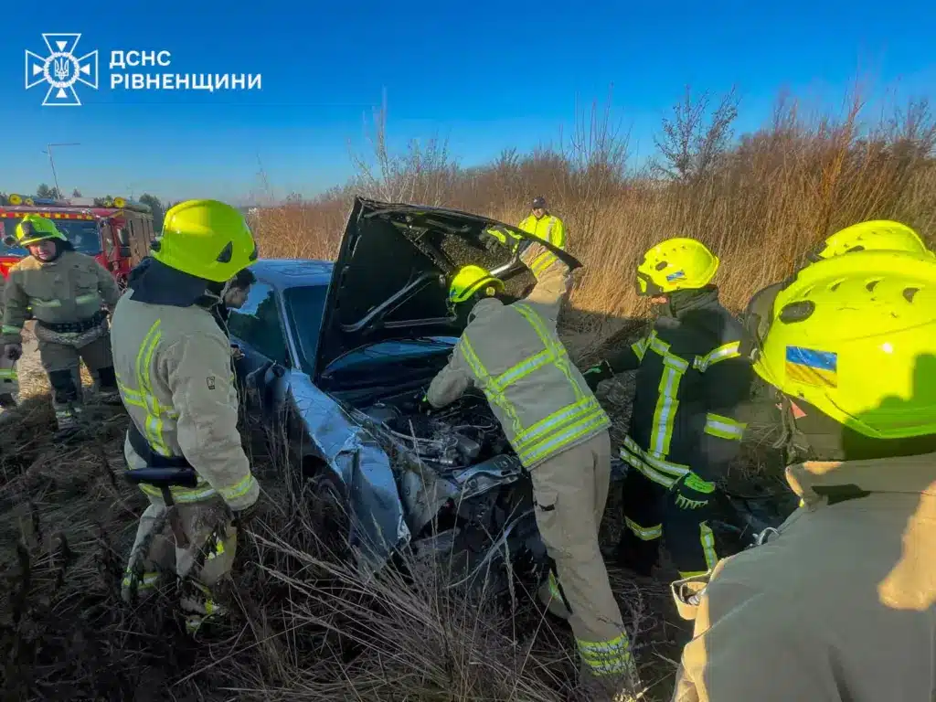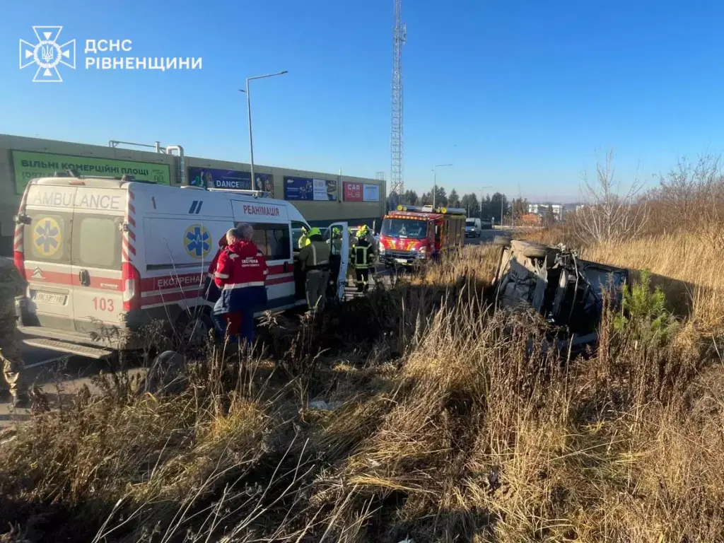 Повідомлення про ДТП надійшло до Служби порятунку Рівненщини о 10:24. На місце події негайно направили чергове відділення 1-ї державної пожежно-рятувальної частини та співробітників аварійно-рятувальної частини аварійно-рятувального загону спеціального призначення Головного управління області.