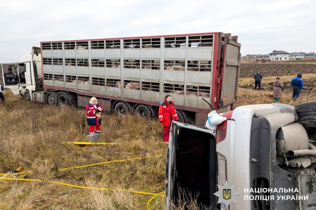 Аварія сталася 3 грудня близько 13:00. За попередньою інформацією, 55-річний житель Колоденки, керуючи автомобілем «BMW X5», виїхав на зустрічну смугу та зіткнувся з вантажівкою «Daf», завантаженою тваринами.