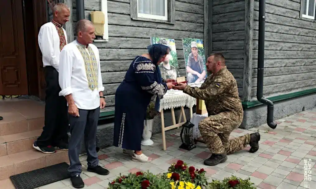 Державну нагороду батькам загиблого – Тетяні та Юрію – вручив офіцер рівненського підрозділу НГУ капітан Вадим Дрильчук.