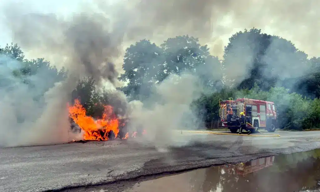 Поблизу села Крупець Дубенського району сьогодні, 11 липня, загорівся автомобіль Mercedes Benz E-220.