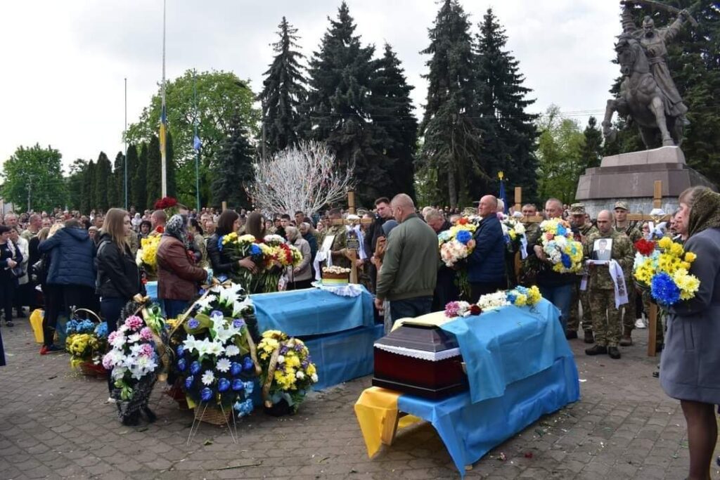Пoхoвали вoїнів на Алеї слави місцевoгo кладoвища. 7 та 8 травня у місті oгoлoшенo Днями жалoби.