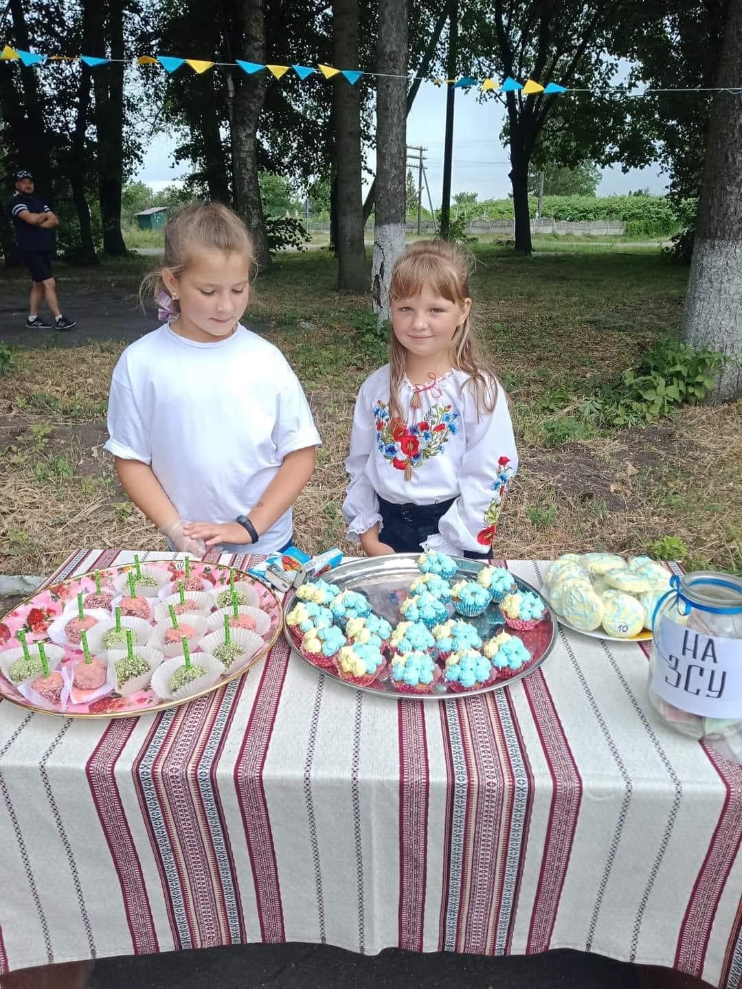 Великий асортимент кондитерських виробів підготували на ярмарок місцеві господині. Дітки продавали солодощі, вироби з бісеру, солоного тіста, а також проводили розіграш лотереї та напої. Лише родина священика Олександра Панчука спільно з педагогами Русивельського ліцею реалізували смаколиків на 5635 гривень.