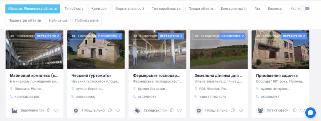 Мова йде про об’єкти нерухомості, земельні ділянки, житло для персоналу. Загалом в області 253 місця для релокації. Також на сайті розміщена економічна інформація про громади області.