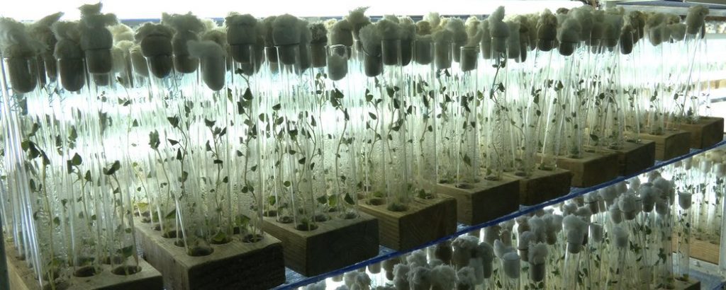 До біолабораторії потрапляє близько 20-30 пробірок з оздоровленими паростками і протягом зими їх розмножують методом живцювання.