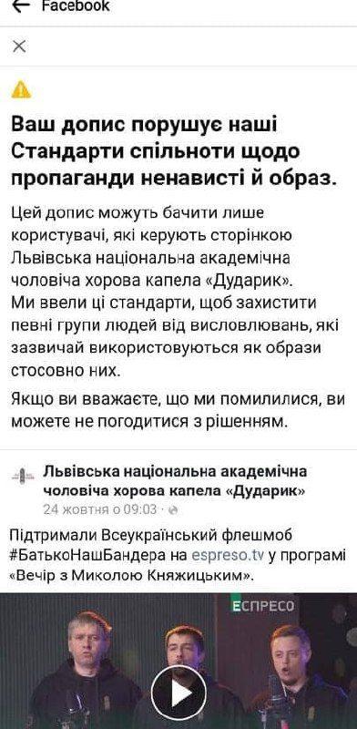 У соцмережі заявили, що відео з виконанням пісні порушує стандарти спільноти через “пропаганду ненависті та образ”.