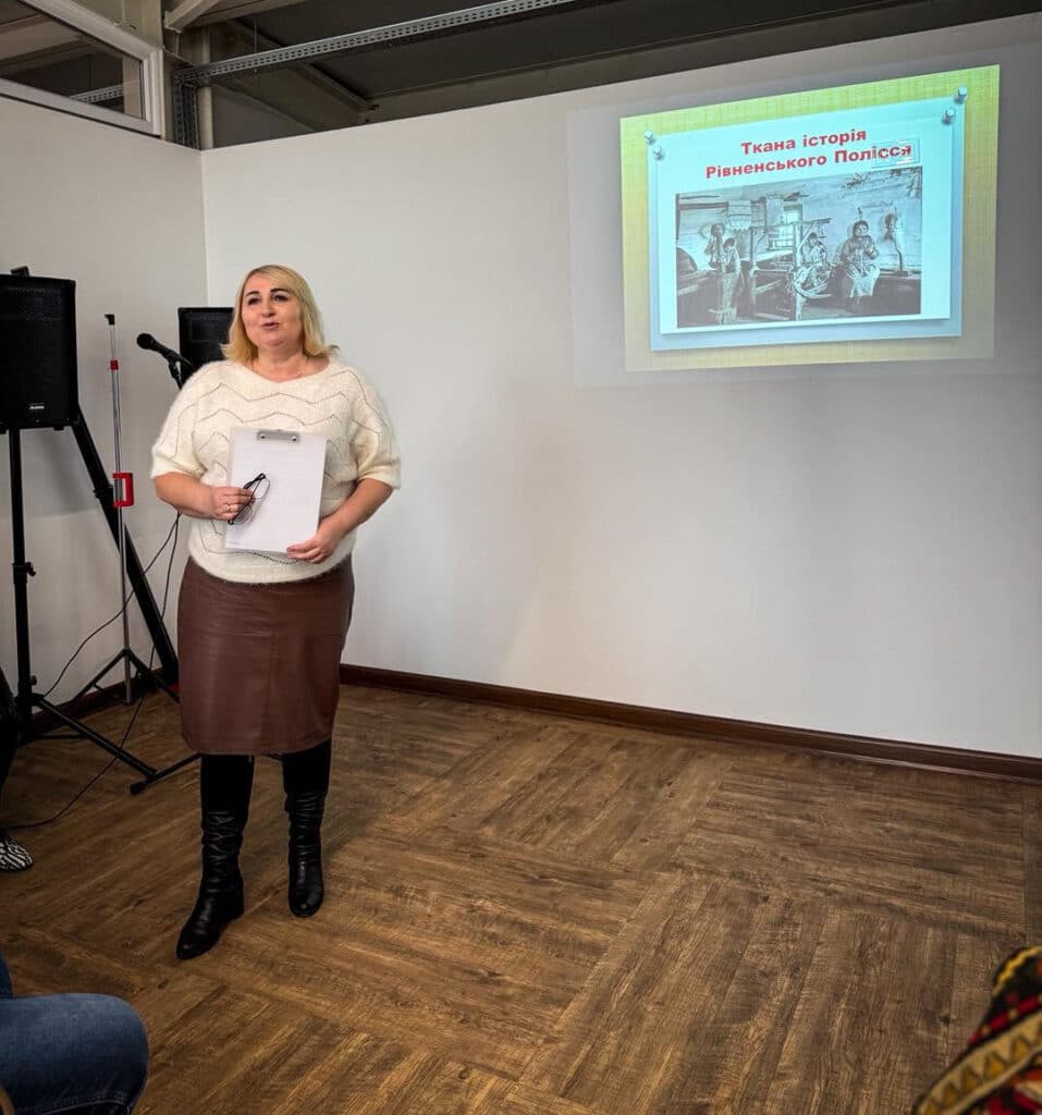 Вікторія Дашко, директор КЗ «Сарненський історико-етнографічний музей», презентувала відеоматеріали про технології ткацтва на Рівненському Поліссі, розповіла про особливості й традиції цього ремесла та його значення у створенні молодої сім’ї.