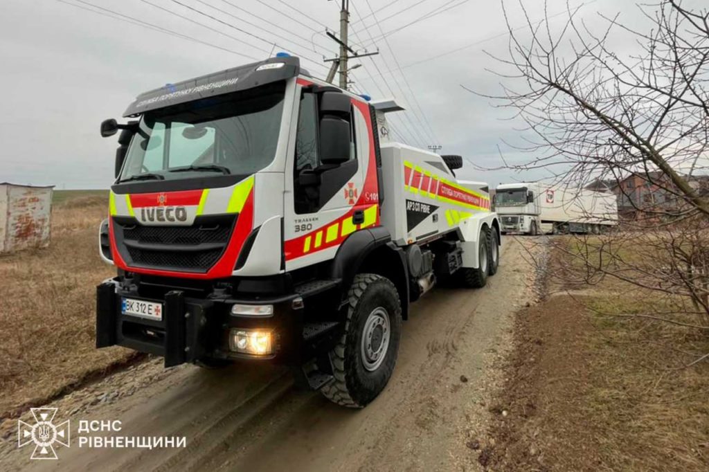 Фура на Рівненщині застрягла на дорозі. Рятувальники допомогли витягнути автомобіль.