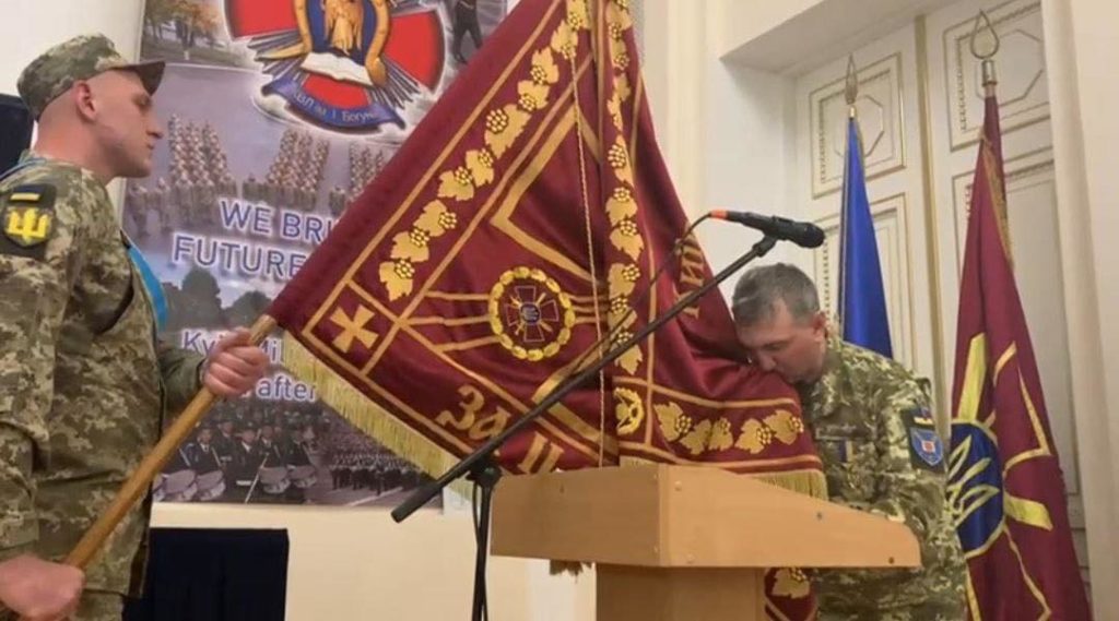 Герой України генерал-майор Ігор Гордійчук у Київському військовому ліцей урочисто попрощався з Бойовим Прапором.