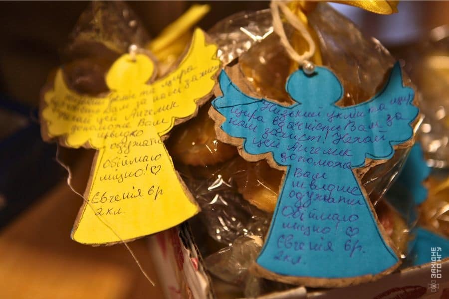 «Я зробила прикраси у вигляді янголів, щоб вони допомогли нашим захисникам скоріше одужати. Я дуже їх поважаю, бо вона – наші захисники», – розповіла учениця другого класу Євгенія.
